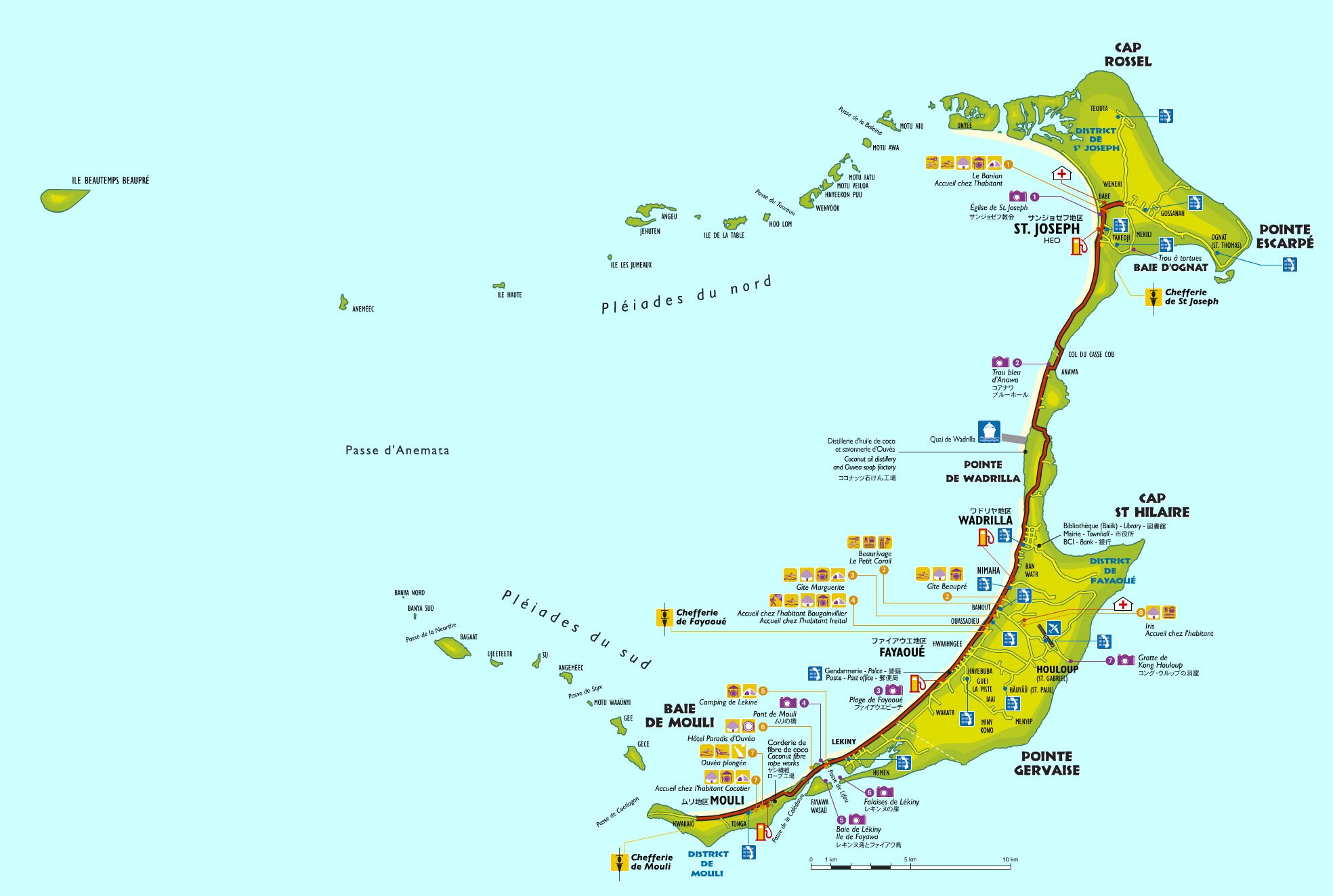 Поиск сервисов, учреждений и достопримечательностей на карте острова Оувеа