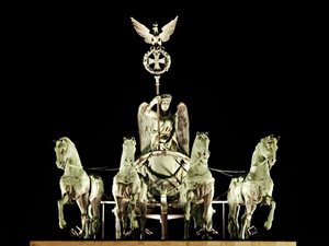 » During World War II, the Brandenburg Gate was badly damaged and only a horse's head has survived of the original quadriga, but the 5,000 plaster casts of the monument helped in the restoration of the Brandenburg Gate.
