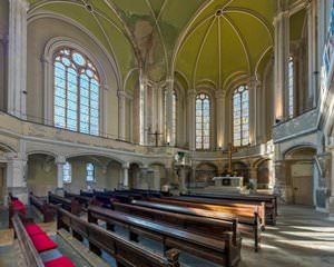 » During World War II Zionskirche was severely damaged; almost all church floors, altar and windows in the chancel were destroyed.