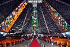 » The Rio de Janeiro Cathedral was built in 1976 in honor of the patron saint of the city, San Sebastian. » The construction is very atypical for temples. It's built in form of a truncated cone with a diameter of 106 meters and a height of 96 meters.