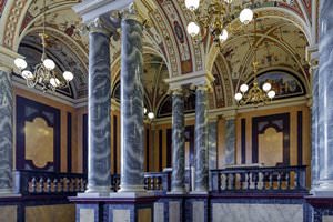 » Over the years of its existence, the opera house had faced two difficulties. In 1869, there was a fire. In 1945, the building was bombed. However, it was restored.