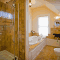 Rooms at Ambrosia Bed & Breakfast offer luxurious amenities, such as feather beds, 600-thread count sheets and down pillows and comforters. Each room’s private bathroom has heated tile floors.