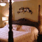 Omelets, bacon, and sausage are part of the home-cooked breakfast served in the elegant dining room. The bed and breakfast boasts a grand staircase and a classical fountain in the foyer.
