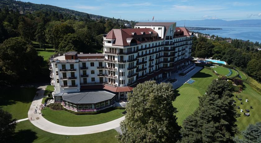 Het gastronomische restaurant Edouard VII serveert regionale gerechten, het grootste restaurant La Suite biedt uitzicht op het meer van Genève, en La Veranda biedt gegrilde gerechten.