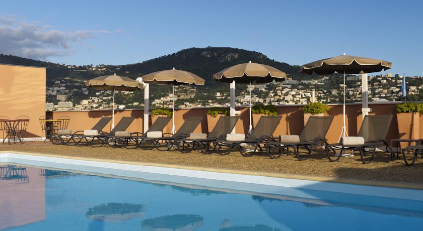 Beschrijving: Het Novotel Nice Centre beschikt over kamers met airconditioning en een buitenzwembad met een panoramisch uitzicht in het centrum van Nice en direct tegenover het internationale conferentiecentrum Acropolis.