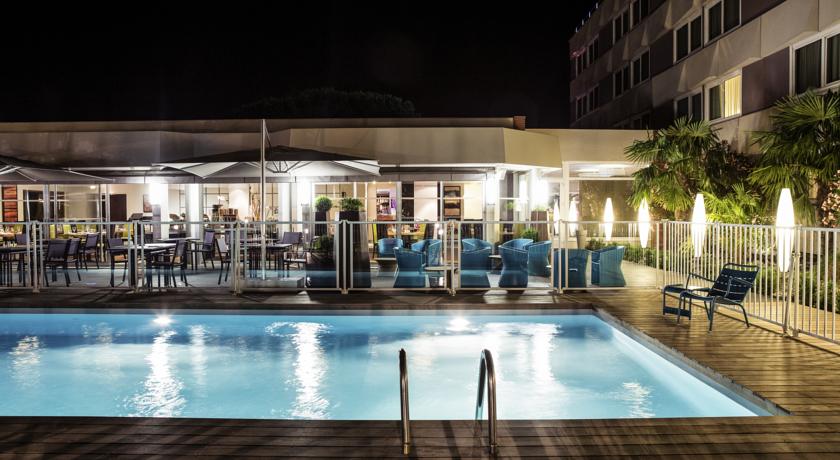 In het café/restaurant van het Novotel Toulouse Aéroport kunt u 24 uur per dag snacks krijgen. Het terras biedt uitzicht op het zwembad.