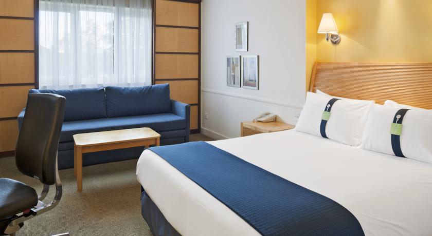 De ruime slaapkamers van het Holiday Inn Chester South hebben breedbandinternet en airconditioning. Alle kamers hebben een eigen badkamer, een televisie en koffie- en theefaciliteiten.