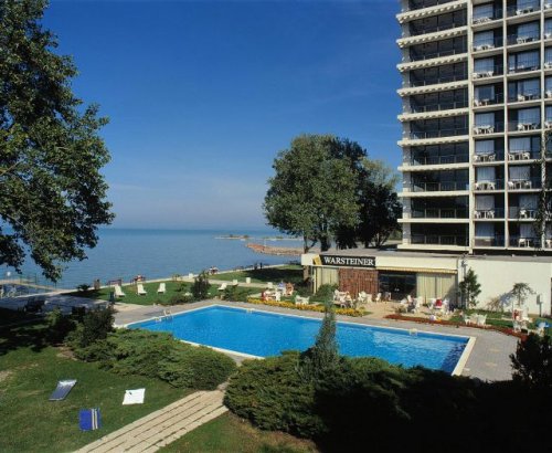 Beschrijving: Het Hotel Club Siofok ligt direct aan de oever van het Balatonmeer en beschikt over een eigen strand met ligstoelen en een buitenzwembad. Het restaurant heeft een groot terras aan het meer.