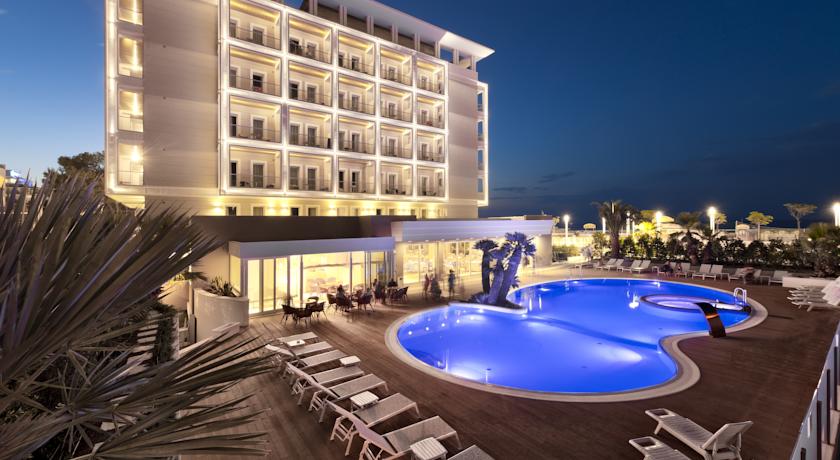 Beschrijving: Set on the seafront in Riccione, Hotel Ambasciatori features a heated swimming pool with children’s area. Rooms offer sea-view balconies and satellite TV, and there is free parking.