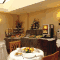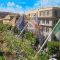 Een ontbijtbuffet wordt geserveerd in de daktuin. De daktuin heeft een overdekt gedeelte en een terras buiten met uitzicht op de wijk Montemario.