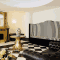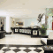Geniet van de grote, open ruimten in het M Glamour Hotel. Het hotel biedt een stijlvol interieur met moderne kroonluchters, een spel van contrasterende kleuren en strakke, glanzende meubels.
