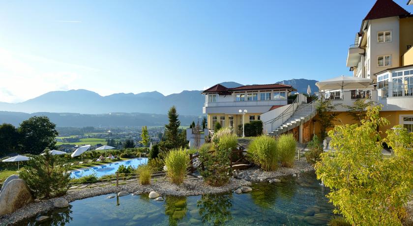 Beschrijving: Dit superieure 4-sterrenhotel ligt in het Tiroolse kuuroord Bad Häring en biedt een grote spa, 2 zwembaden en een panoramisch uitzicht op de vallei van de Inn en de bergen.