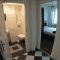 The apartment offers a sitting area with a sofa bed and an armchair, where you can watch cable TV. Here you can also find a kitchenette equipped with a refrigerator and a dishwasher. The bathroom features a washing machine.