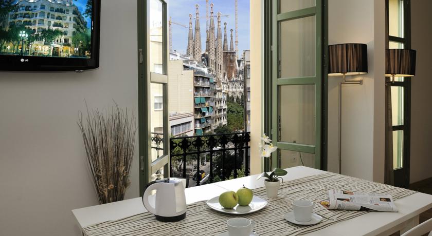 De suites bieden een eigentijdse inrichting met houten vloeren en elk appartement met airconditioning heeft een balkon met uitzicht op de Sagrada Familia. Het water van het gebouw wordt verwarmd door zonne-energie.