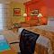 All rooms are decorated in warm colors and have a 32” flat-screen TV with access to cable channels. Each room has a well-lit work desk which includes an ergonomic chair and electrical outlets.