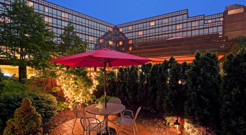 Pavilion Grille bevindt zich in de hoofdlobby van het LaGuardia Plaza. U kunt in het hotel ook terecht in de Embers Lounge.