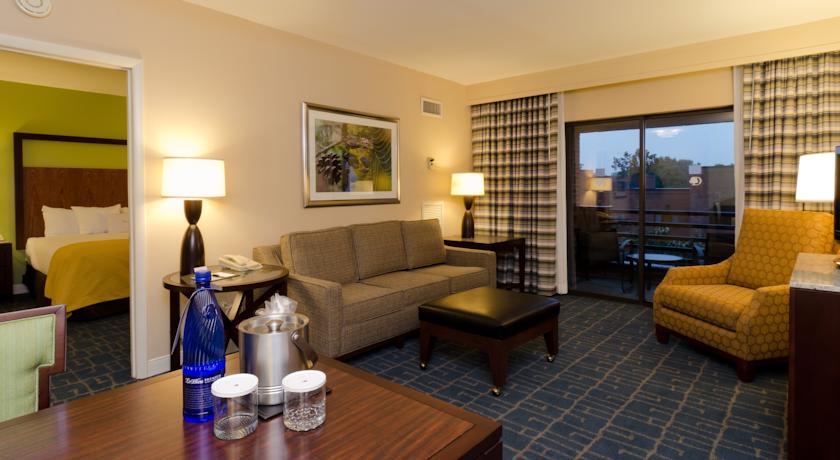 With in-room fully equipped kitchens, a modern business centre and on-site fitness facilities, guests can feel at home when staying at the Charlotte/South Park Doubletree Suites. In addition, the hotel features many on-site services, including a gift shop, restaurants and car hire service.