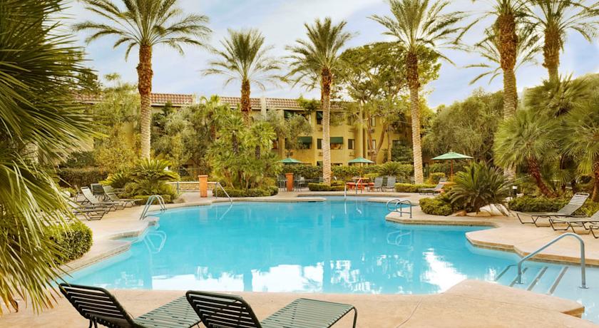 Beschrijving: Dit hotel ligt op 1,6 km van de Las Vegas Strip en biedt een gratis dag en nacht rijdende pendeldienst naar de internationale luchthaven McCarran. Het beschikt over een buitenzwembad en kamers met gratis WiFi.