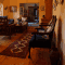 Bloemstantia’s elegant dining room features antique dark-wood furniture and a long dining table. South African wine can be enjoyed at the bar and guests are welcome to join their hosts for a drink at the Honest Joe Pub.