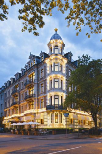 Beschrijving: Het kleine 5-sterrenhotel Alden Splügenschloss geniet een rustige ligging midden in het centrum. Alle kamers beschikken over een entertainmentsysteem met flatscreen-tv, jacuzzi-ligbad en fitnessapparatuur op aanvraag.