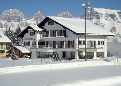 Beschrijving: The Mittenwald is a carbon-neutral hotel in the ski resort of Flumserberg, right next to the ski slope and the hiking trails. It offers en-suite rooms with cable TV and free parking.
