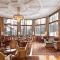 Het restaurant Arvenstube serveert gastronomische gerechten en heeft een romantisch terras in het park.