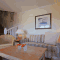 Les appartements au style frison de l'hôtel 4 étoiles Dorint Strandresort & Spa Sylt/Westerland comprennent un salon/chambre combiné à une kitchenette. La salle de bains dispose d'un sèche-cheveux et de peignoirs.