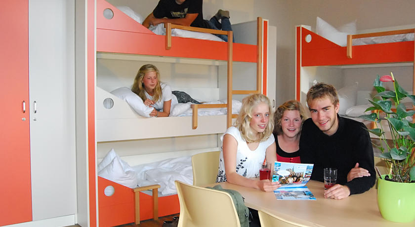 Most rooms at the Younior-Hotel are fitted with bunk beds and a private bathroom. Many have views of the lakes.