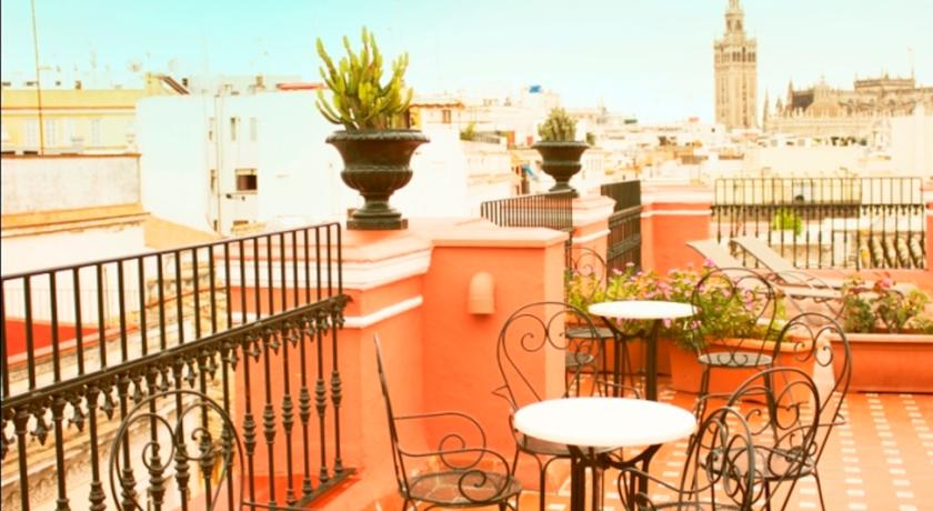 La terrasse bien exposée de l'établissement offre une vue sur le centre historique de Séville. Au rez-de-chaussée, vous trouverez également un joli patio intérieur, un bar et une terrasse accessible en été.