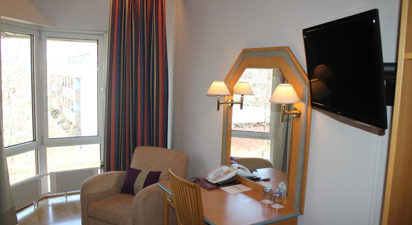Les chambres du Park Alandia comprennent une télévision par câble, un bureau et une salle de bains privée. Elles sont décorées dans un style classique avec du parquet. Une connexion Wi-Fi gratuite et un four micro-ondes sont disponibles dans le hall de l'hôtel.