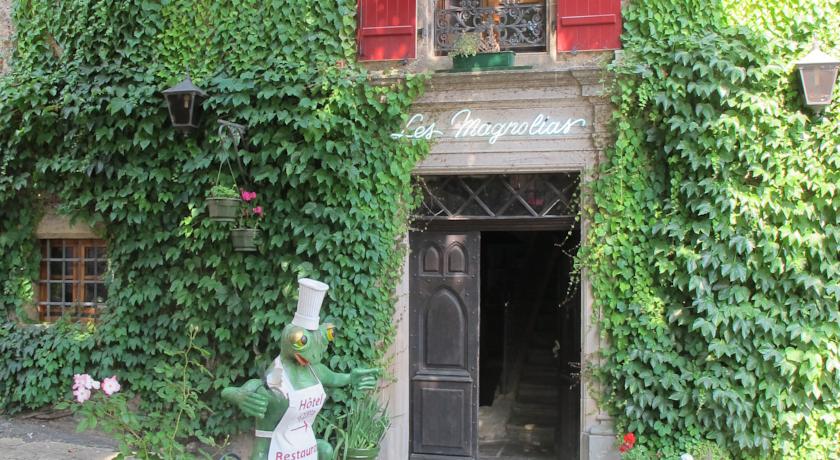 Un petit-déjeuner buffet est servi tous les matins à l'Hostellerie Les Magnolias. Une cuisine régionale est servie dans le restaurant gastronomique avec cheminée. Le dîner peut également être servi sur la terrasse.
