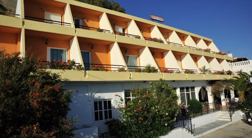 Les chambres de l'hôtel sont meublées simplement mais offrent un très grand confort. Chaque chambre est dotée d'un balcon avec une vue imprenable sur la mer et l'île de Gavdos. Les suites et les studios sont quant à eux plus spacieux et disposent d'un coin cuisine.