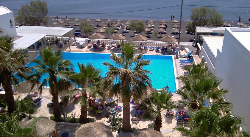 La superbe piscine extérieure est un lieu propice à la détente. Vous pourrez vous y baigner ou vous détendre sur une chaise longue tout en admirant la vue magnifique sur la mer. Le bar de la piscine vous propose des boissons ou des collations et l'hôtel Kamari Beach organise d'agréables soirées barbecue.