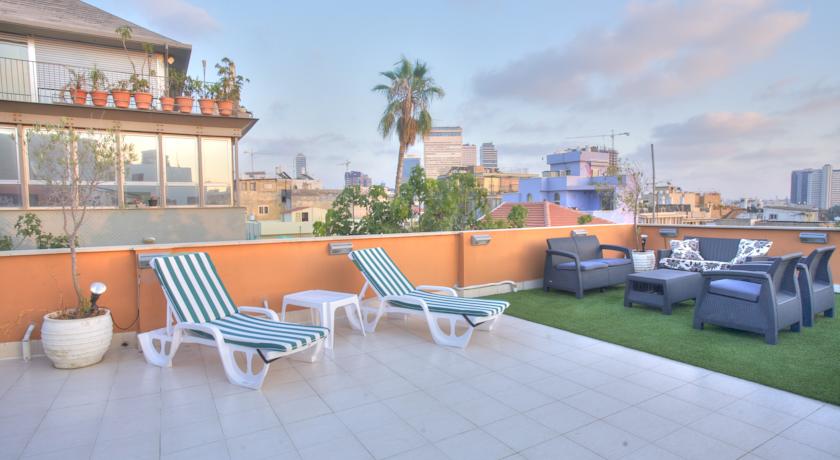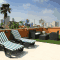 Le toit-terrasse du Galileo offre une vue magnifique sur la ville. Il est équipé de chaises longues et de transats.