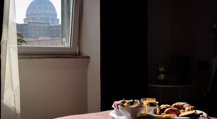 Vous séjournerez dans une chambre meublée de manière élégante dotée d'un luxueux linge de lit et d’œuvres d'art sur les murs. Toutes les chambres comprennent un minibar et une salle de bains privative avec sèche-cheveux. Certaines d'entre elles possèdent un lit à baldaquin ou donnent sur la Cité du Vatican.