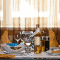 A breakfast buffet is provided. The Golden Fork restaurant offers Japanese and Russian cuisine accompanied by a selection of fine wines and cognacs.